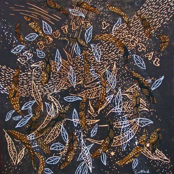 Influencée par les rituels et coutumes amérindiennes, sa recherche plastique est fondée sur un bagage formel théorique et pratique constamment enrichi. Son travail présente une énumération de signes, cohabitations humaines, animales, végétales favorisant l’idée de répétition, de mouvement, d’équilibre. Son travail est une continuelle remise en question, même si celui-ci demeure avec le temps, toujours imprévisible. Impressions sur papier fait main ou traditionnel, procédés de reproduction en relief ou en creux à l’enseigne d’une technique mixte, tout contribue à servir son imaginaire.